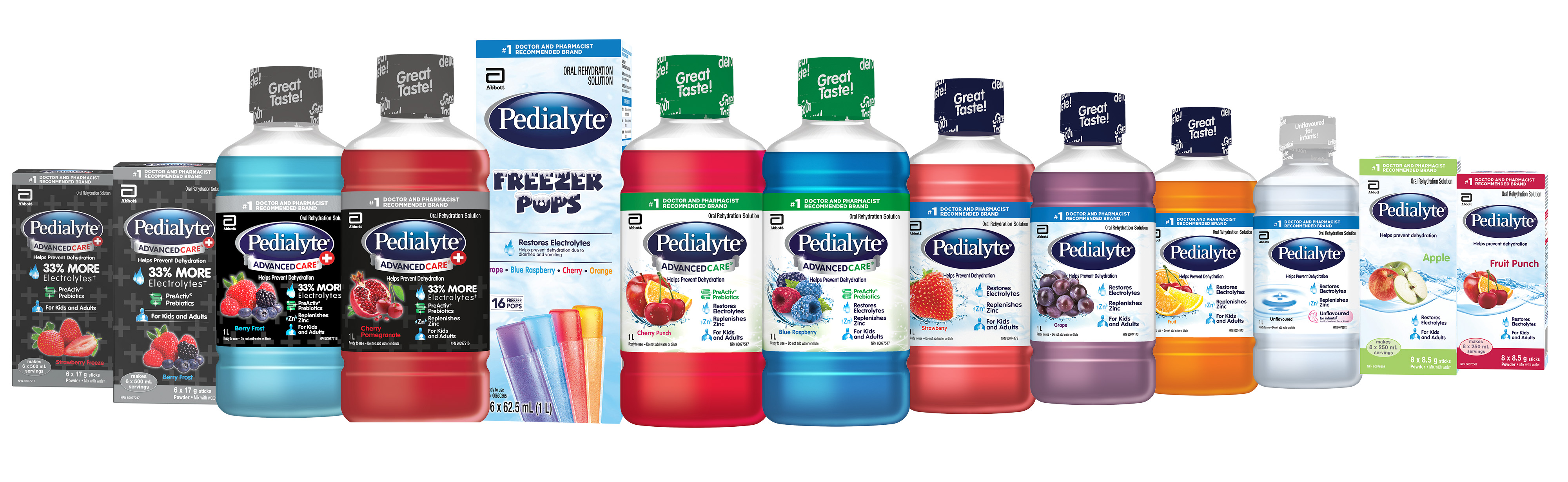 Pedialyte® AdvancedCare® Plus litres contain 33% more electrolytes† to help you feel better fast and replenish the fluids and electrolytes you lost when dehydration‡ occurs.
